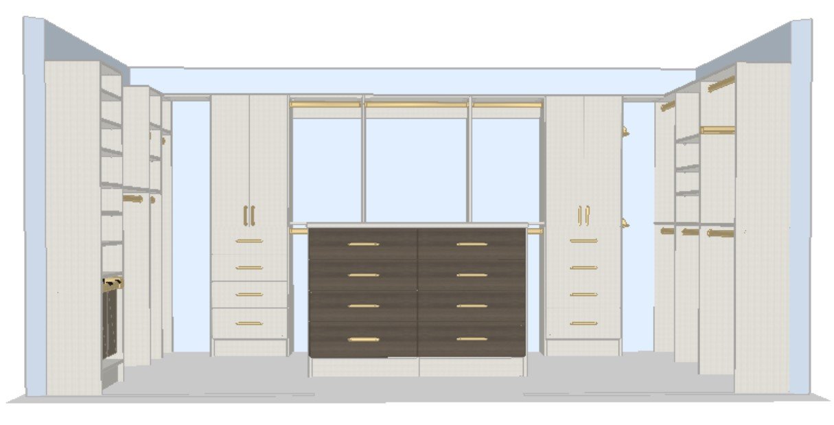 20 x 20 Master Bedroom Extension Floor Plan. Working with a Narrow Closet Footprint. Instead Closets of Tulsa designed a custom closet.